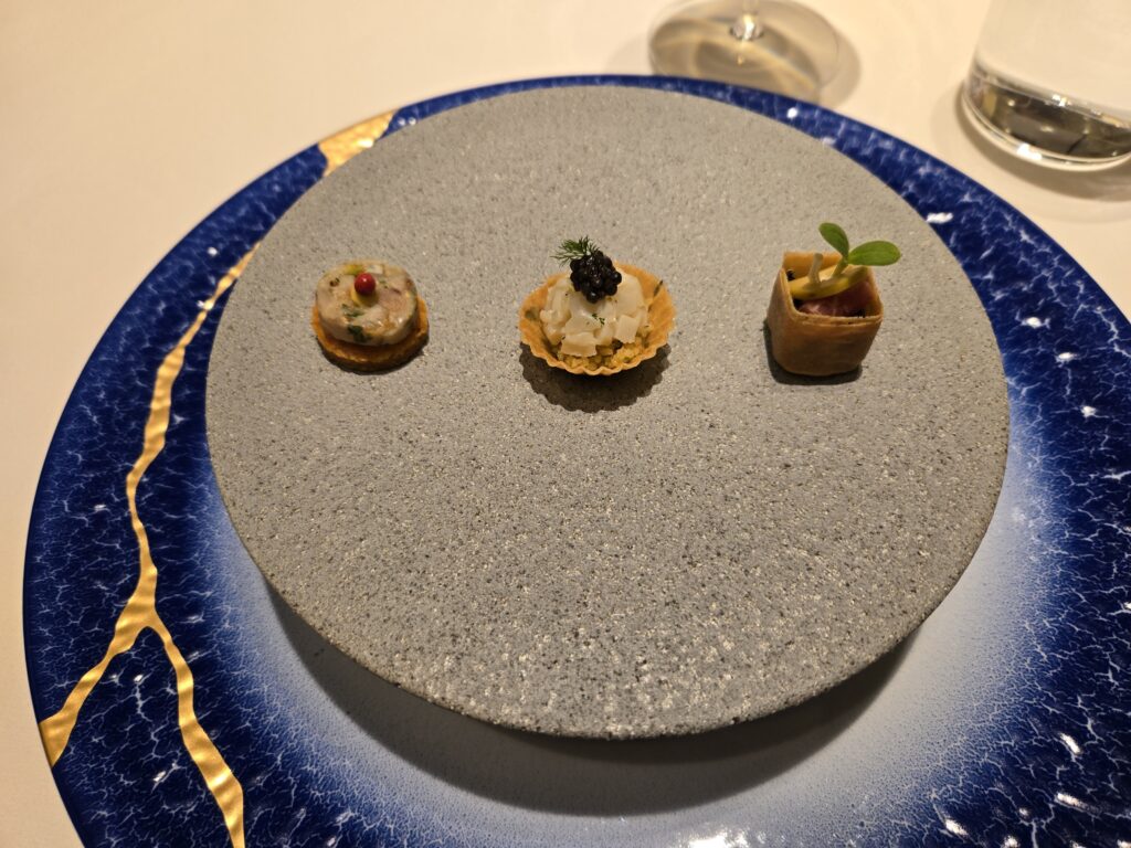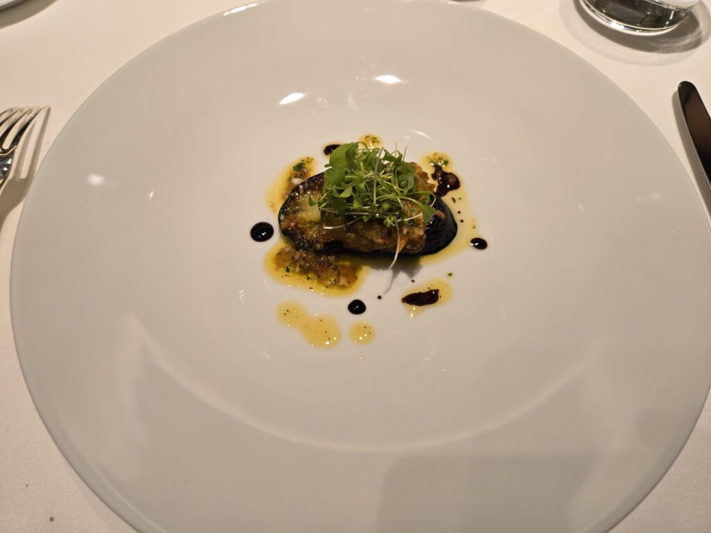 続く温前菜・アントレは茨木県産穴子と佐土原なす、どちらもオイルでしっかり焼いているので、冬にはうれしいハイカロリーな一品でありながら、素材そのものがあっさりしているのでとても良いバランス。