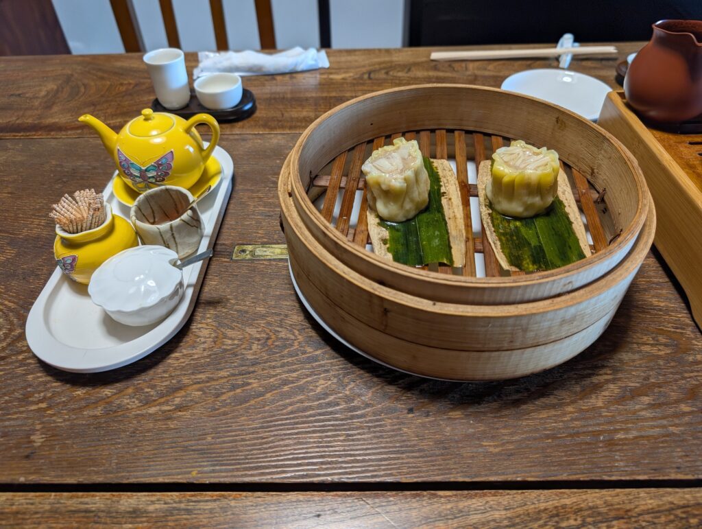 お茶を味わっていると飲茶が届きます、まさしくお茶と頂く軽食中華なのでその名の通り飲茶なのですね、このタイミングで食事とのペアリング『凍頂烏龍十五年老茶』を頂きます