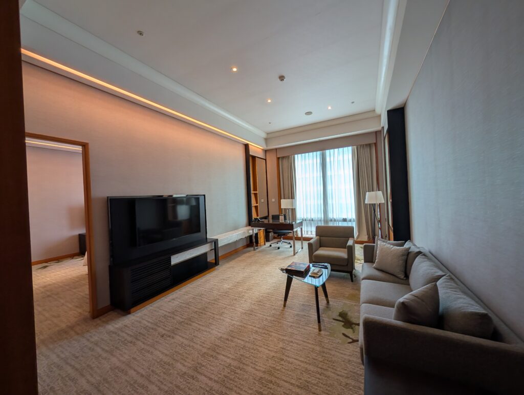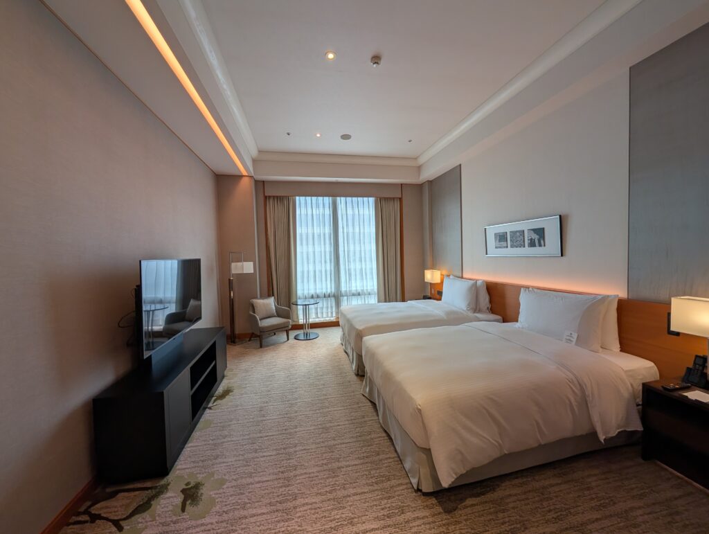 午前のフライトでランチタイムの機内食を頂いていたので、空港からホテルへ直行、お部屋のアップグレードで、着くなりテンションが上がります