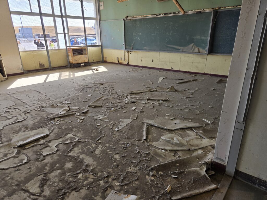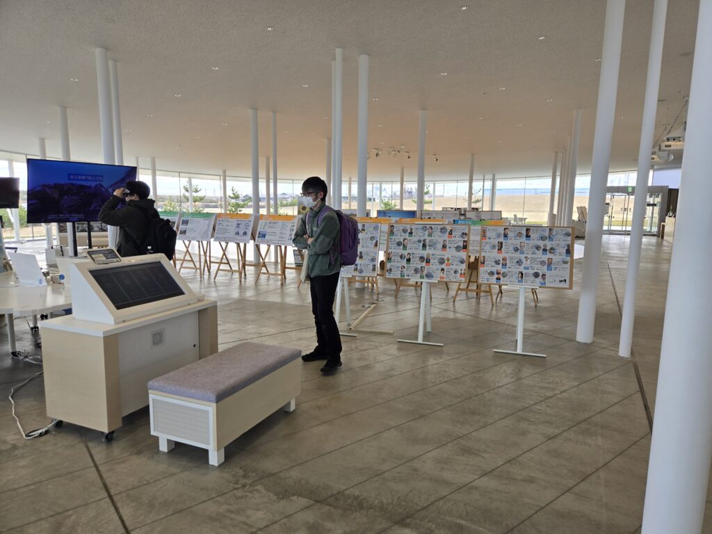 館内では、旧閖上中学校で実際に生徒たちが使っていたロッカーや、亡き生徒の遺品、痕跡から津波の高さが確認できるドアなど、震災の記憶をたどる展示物や映像資料を、館内常駐スタッフの案内で見ることができます。海と名取川河口に近い閖上地区に、どのように津波が押し寄せたのか、発災当日の時系列を、写真・映像・体験証言を通して具体的に知ることができます。館内の語り部ガイドのほか、出張語り部、オンライン語り部にも取り組んでいます。