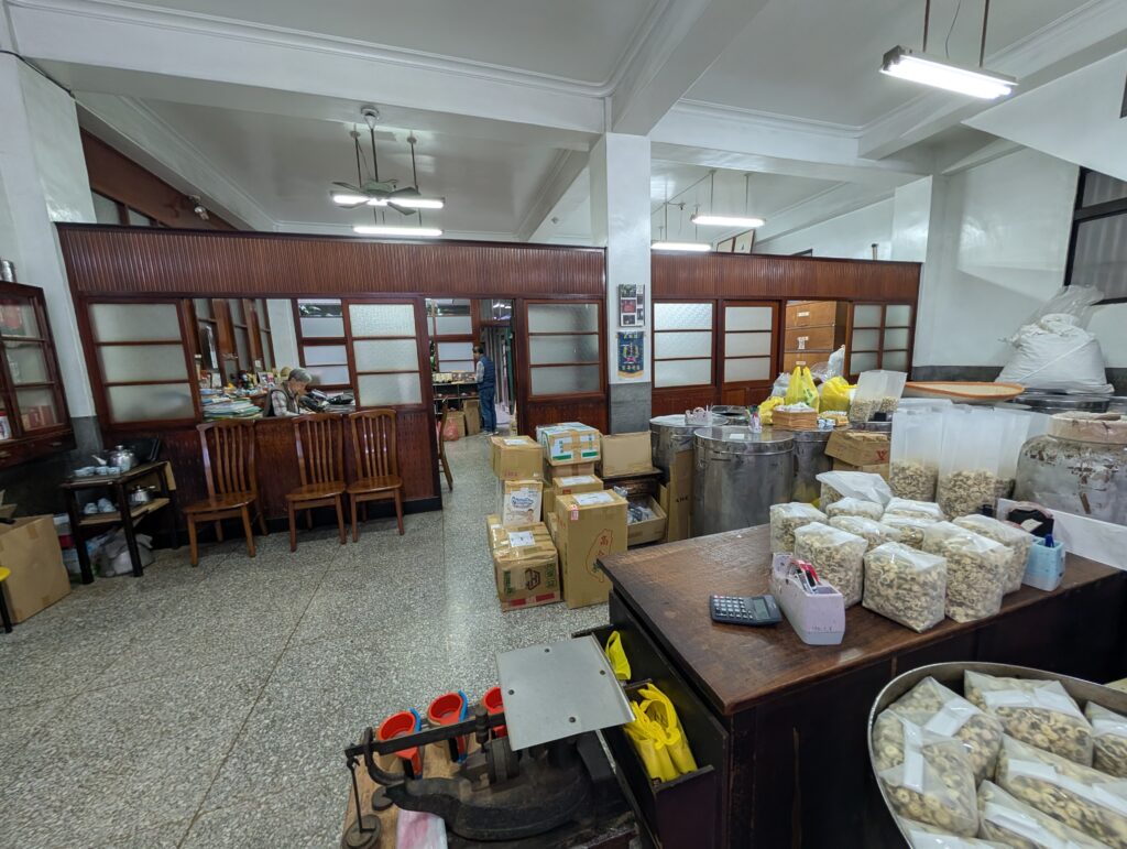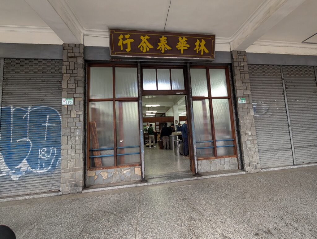 こちらのカフェから10分ぐらい歩いた場所に、創業1883年、台北で最も歴史のあるお茶のお店があります、『林茂森茶行』という看板の新しい現代的な雰囲気のお茶屋さんが目的地かと思いきや、このお店に向かって路地を挟んで向かって右に20mぐらい歩くと、主人がいつも台湾茶を買ってくるお茶問屋の『林華泰茶行』がありました
