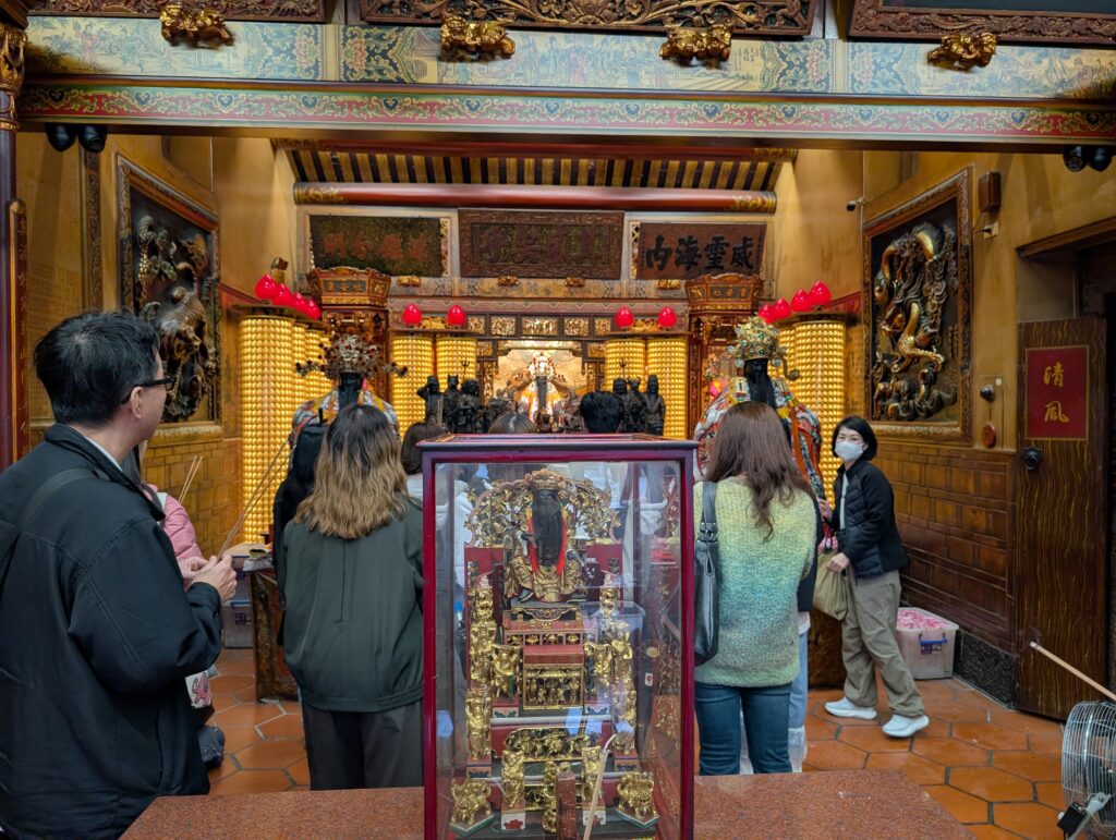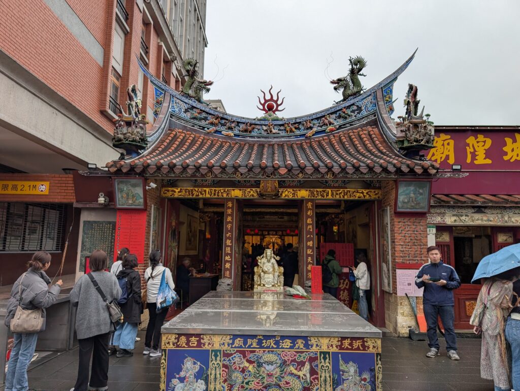 街歩きの途中にあるのが道教寺院の『台北霞海城隍廟』、お祀りされているのは中国縁結びの神様『月下老人』、ここにご利益を求めて本当に多くの人が参拝しに来ます