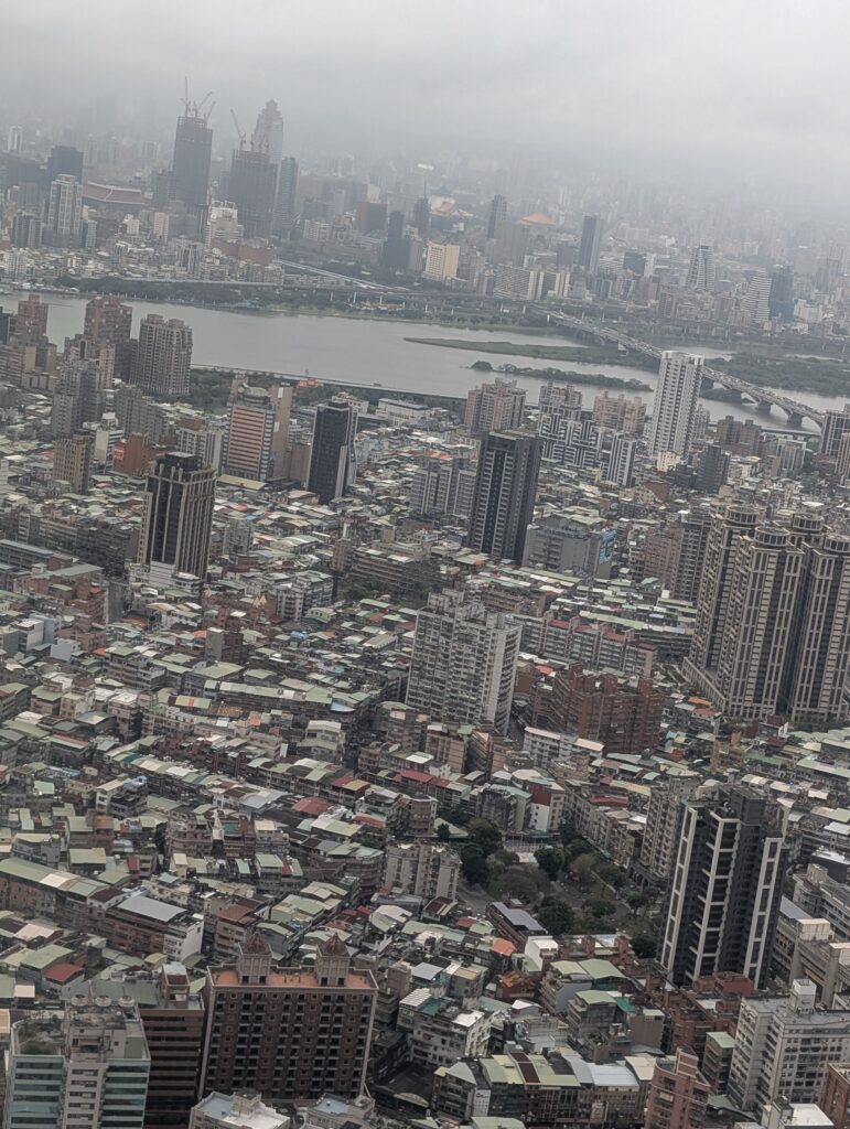 フライトは約3時間、半分まで来ると鹿児島の桜島上空、後半分で台湾の首都圏人口約700万、日本の大阪位の大都市、台北の街並みが見えてきました