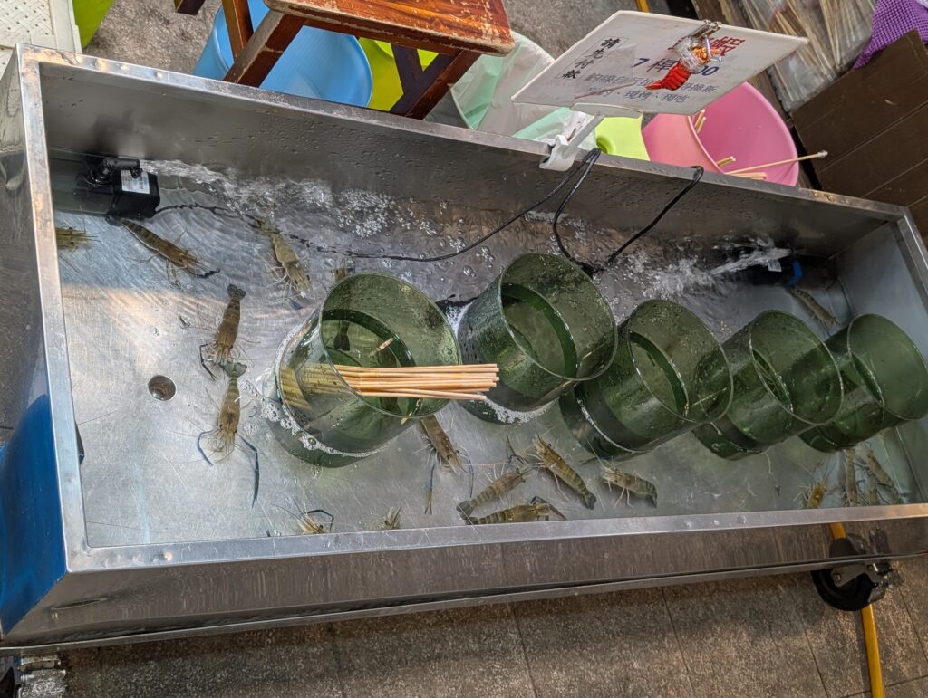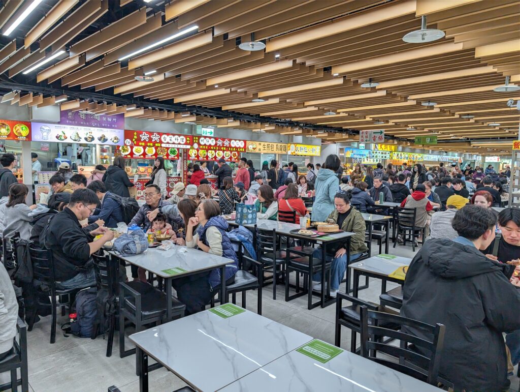 スープだけだと物足りないのでリニューアルした美食街へ、35店の屋台が集まる屋台村フードコートで、ここは日本人も多く来るらしく片言の日本語で対応してくれました、落ち着いて食べたい方向けとネットでオススメされていましたがとにかく騒がしい、この場合の落ち着いては、私的に翻訳すると座って食べられるという事と、地下1階なので雨の日でも飲食できるという意味、屋台グルメを楽しむなら普通の落ち着いてを期待してはいけないようです