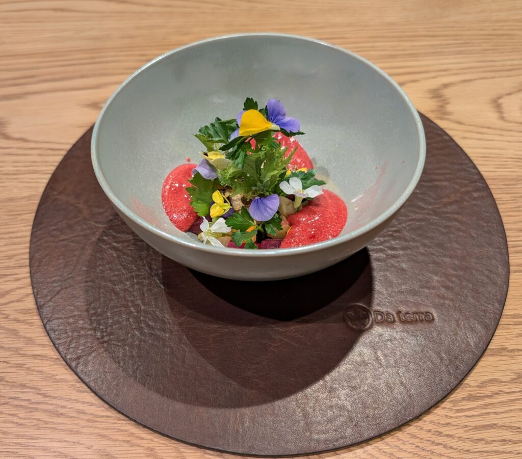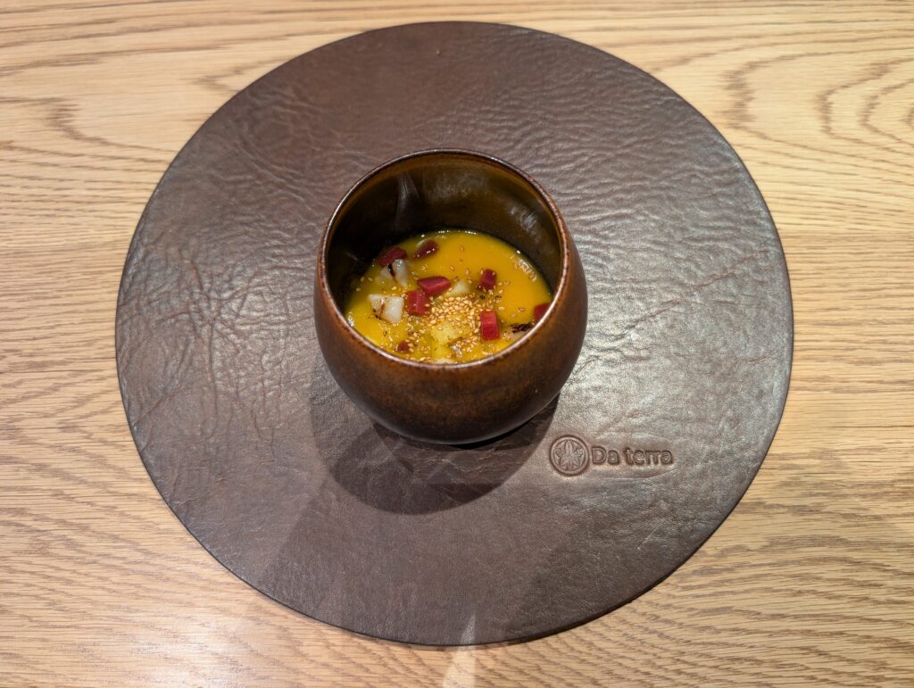 水物は桜香大福とせとか、大福というメニューですが古都華(ことか)という奈良県の糖度が高い高級イチゴを、薄い求肥のような皮で巻いた和菓子風デザート、せとかは様々なオレンジを掛け合わせ、それぞれの良い特徴を受け継いだ品種、その濃厚なコクと甘みは「柑橘の大トロ」と呼ばれるフルーツ、確かに手を加える必要が無い美味しさでした
