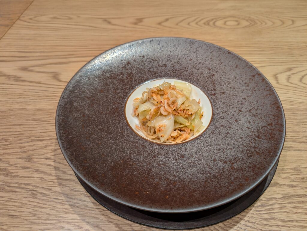 焼肴は福子(セイゴ→フッコ→スズキとなる出世魚)ヨモギ味噌焼き・新馬鈴薯とびこ和え、脂ののった白身にヨモギの風味が味噌と調和して春を頂く感じです、添えてあるのは瑞々しい新じゃがをソーメンのように細く切ってとびこと和えたもの、どちらも初めての斬新な味覚